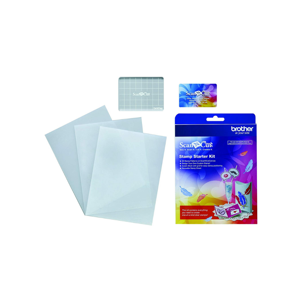 Incluye 50 patrones de sello con ScanNCut Canvas, 3 hojas de sellos 6 “x 8” (150 mm x 200 mm), bloque acrílico con rejilla de 3 “x 4” (75 mm x 100 mm), Código de activación para acceder a CanvaWorkspace y guía de uso.